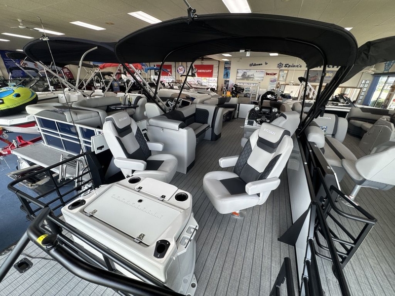 The Sylvan L3 Party Fish embodies the essence of a family-friendly fishing pontoon, showcasing a dedicated fishing station complete with rod holders and a live well, catering to anglers of all skill levels. Whether casting lines or reeling in the catch of the day, this specialized setup ensures an optimal fishing experience. Equipped with the standard SPX third tube performance package, this pontoon guarantees stable and smooth cruising, providing a secure platform for fishing excursions on the water. Its sleek black exterior rails add a touch of contemporary style, making it a standout vessel on any lake or river. Furthermore, the Sylvan L3 Party Fish features an integrated ski tow, offering versatility for water sports enthusiasts. Plus, a power canopy provides refuge from the sun's rays, ensuring comfort during extended outings. Loaded with family-friendly features and tailored for angling adventures, this pontoon is the ideal companion for creating lasting memories on the water with family and friends.