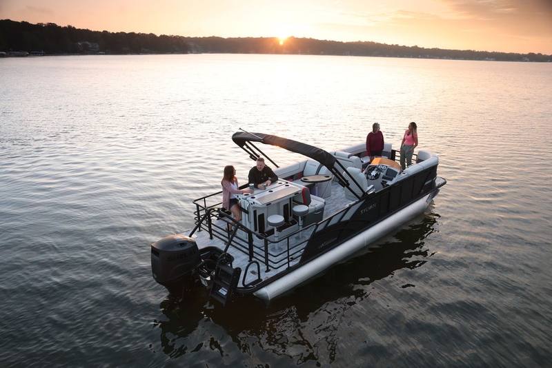 The Sylvan Mirage X3 DLZ DH Bar is the epitome of luxury and versatility on the water, blending cutting-edge design with exceptional performance. Equipped with the standard SPX third tube performance package, it delivers superior stability and handling, ensuring smooth, responsive rides even in choppier waters. The DH stands for dual helm, so enjoy the luxury of side by helm chairs. Also, one of its standout features is the innovative convertible rear lounge, which easily flips into a spacious four-person bar area, offering both comfort and functionality for entertaining guests. Whether you're lounging in the back or enjoying a cocktail at the bar, the X3 DLZ Bar delivers an unparalleled boating experience with style, convenience, and top-tier performance.