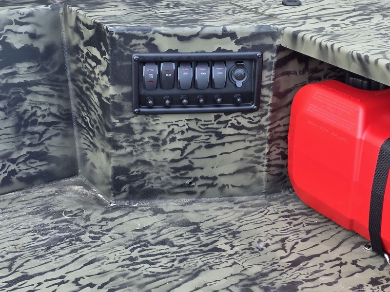 The cockpit and decks are covered with Sure Tread™ flooring that offers superior grip and deadens sounds. Bow and stern pedestal seating locations offer versatility while hunting or when underway, and easy-to-reach switching offer simple, reliable control over the boat's functions.
