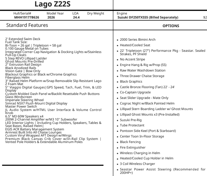 We offer the details and availability of listings in good faith, however, Boatzon is not liable for the quality, description, or pricing of this listing. This vessel is offered subject to prior sale, price change, or withdrawal without notice. If you have concerns about the information, images, or accuracy contained in this listing, you can report this listing by emailing us at Support@Boatzon.com
