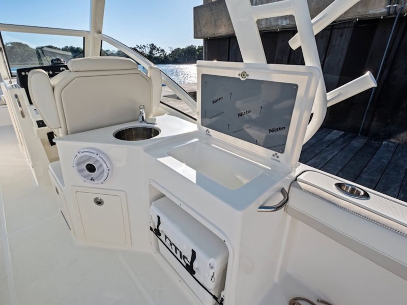 Equipped with Yamaha Helm Master joystick and autopilot, this boat offers effortless docking and precise control, making it easy to handle in any condition. The layout is designed for both entertaining and functionality, featuring a bow table, forward bow shade, and sun lounge filler cushion for maximum comfort on the water.