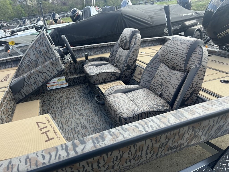 HYPER-LIFT BASS SERIES FEATURING THE ALL-NEW 2025 H20What happens when you take the “original” all-welded aluminum boat since 1966 and combine it with the finest padded hull design in the industry, plus years of innovation, and topped with essential features at an economical price? You get the Hyper-Lift Bass Series, now available in 17, 18, and 20-foot lengths. The ergonomically designed sport seating offers more comfort and support while running the Yamaha outboard. The expanded front deck, with increased storage capacity and new drop-in liners, is a bonus for anglers of all ages. Best-in-class standard features include a Humminbird graph, Minn Kota trolling motor, 6” Atlas jack plate, and hydraulic steering. The fast, dry, pad hull design of the Hyper-Lift Bass Series will get you to and from your destination safely and most certainly quickly!