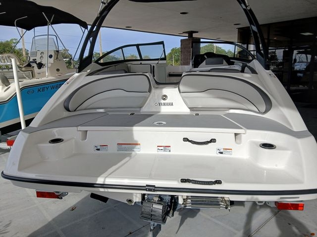Introducing the 2026 Yamaha AR190, a versatile and stylish boat that comes with a durable galvanized trailer. Step aboard and enjoy the luxurious snap-in teak-style marine-grade carpet, along with a convenient ski locker for all your water sports gear. The removable dinette table with pedestal can easily be mounted at the cockpit for dining or socializing. Comfort is key, featuring hinged seat cushions, integrated drink holders, and an adjustable captain's chair with a flip-up bolster for that perfect view. Stay refreshed with the integrated removable cooler and navigate safely with courtesy deck lighting and a dedicated anchor and rope locker.