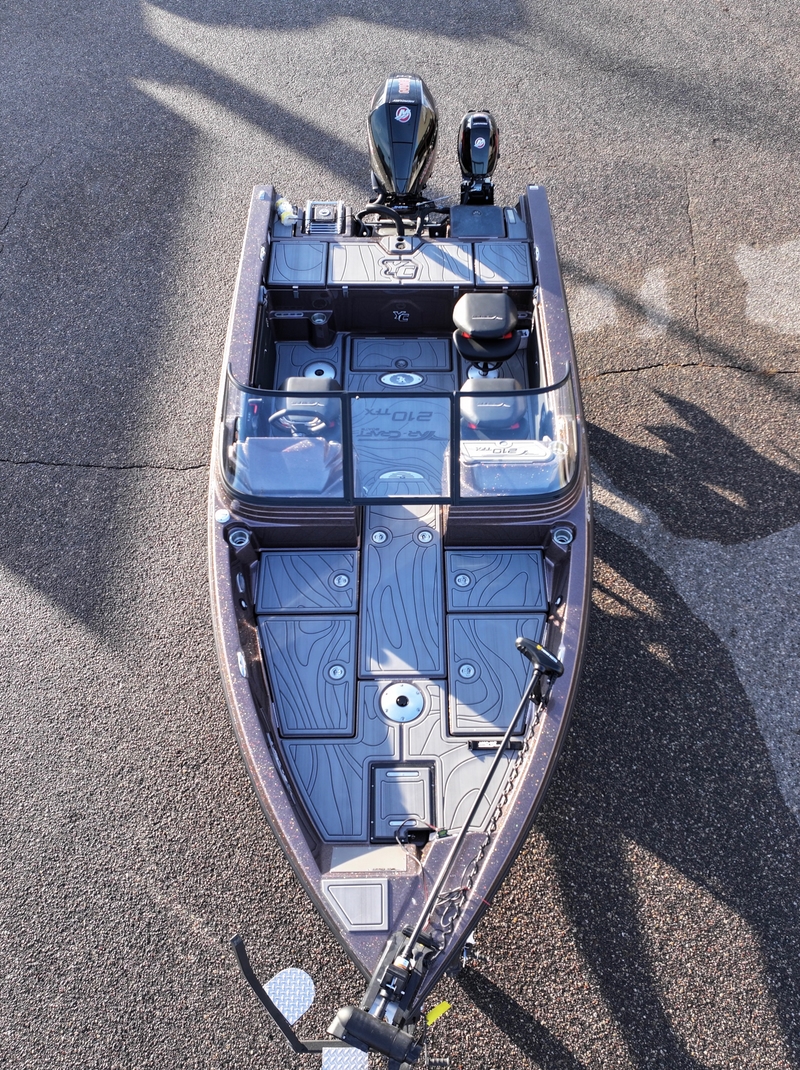 This boat come loaded from the factory with all of these great features and options. MinnKota Terrova 112/MDI/WR/72, Pro-Guide 2 bank charger, MinnKota 3 bank charger, Humminbird 9' & 12' Xplore's, Travel cover, Clarion stereo.