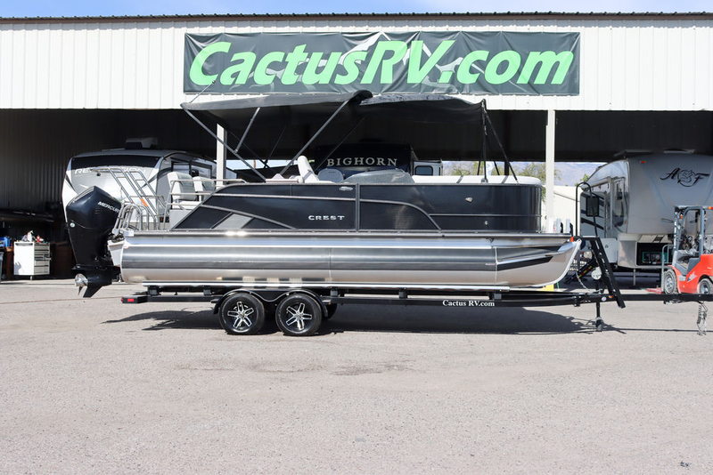 The Crest Classic Platinum 220 SLRC is a high-end 22’ tritoon-style pontoon designed for performance, comfort, and entertaining. It’s one of Crest’s most popular layouts thanks to its rear dual chaise lounges + captain seating configuration, making it ideal for both cruising and relaxing. Whether you're hosting friends, pulling tubes, or enjoying a sunset cruise, this layout delivers the perfect balance of space and functionality.