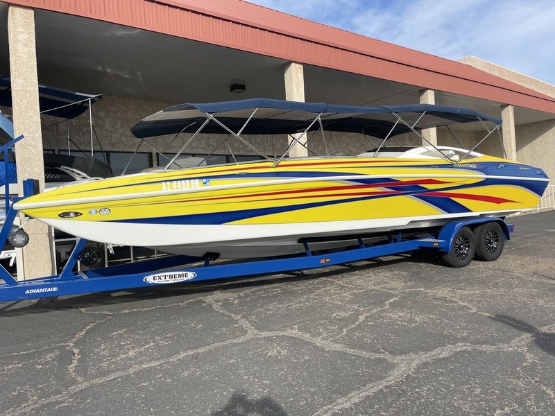 2008 Advantage 29 X-Flight Walk Thru powered by Mercury's 496 MAG HO Bravo 1 drive, New front bimini added July 2024 with complete new mesh material front & back, new 3 color Dek X August 2023, new swim platform added about the same time, trailer got all new brakes and brake actuator, bunks and wheels. Complete engine and drive service with water pump impeller performed 1/13/2026 along with bellows and gimbal bearing replacement.