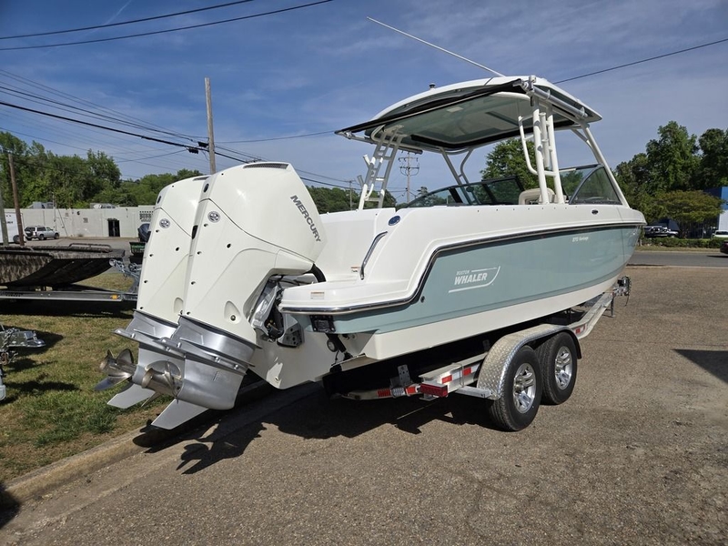 2020 Boston Whaler 270 Vantage w/ Twin Mercury F225's. Option Include: Stainless Steel Props, Freshwater and Raw Water Washdown, Forward and Side Curtains, Manual Rear Shade, Convertible Port Lounge Seat, Refreshment Center w/ Sink and 50-quart Engel Cooler, In-Floor Storage for Skis/Rods, Head w/ Sink, Solid Surface counter, and Pump-Out, 12 Inch Raymarine GPS, Raymarine VHF, Mercury Active Trim, Mercury SmartCraft Gauges, Remote Controlled Spot Light, Fusion Stereo w/ JL Audio Speakers and Subwoofer, Underwater Lights, Table. PRICE DOES NOT INCLUDE TRAILER. ADD TRAILER FOR $9,000. VERY CLEAN. $139,995!!! FINANCING AVAILABLE!! Call Sales Department at (804) 226-1111 More available Inventory at www.southeasternmarine.net
