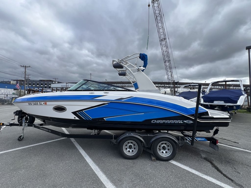 The 2017 Chaparral Vortex 2430 VRX is a high-performance 24-foot jet-powered bowrider from Chaparral Boats, designed for watersports, family cruising, and all-around fun on the water. Powered by twin Rotax jet engines producing up to around 500 horsepower, it delivers strong acceleration, agile handling, and shallow-water capability, making it both sporty and versatile. Its spacious layout comfortably seats up to 12 passengers and features dual captain’s chairs, wraparound cockpit seating, and a large open bow with premium upholstery and smart storage throughout. The VRX package adds a wakeboard tower, premium audio, touchscreen helm controls, and stylish graphics, enhancing both performance and appearance. With a deep, stable hull and Chaparral’s reputation for quality construction, the 2430 VRX offers a smooth, responsive ride that balances luxury, power, and practicality for an exciting day on the water.