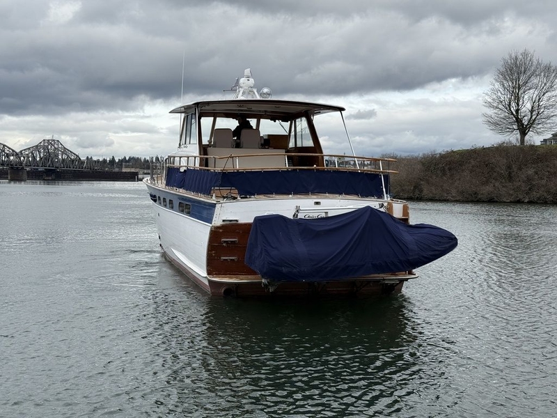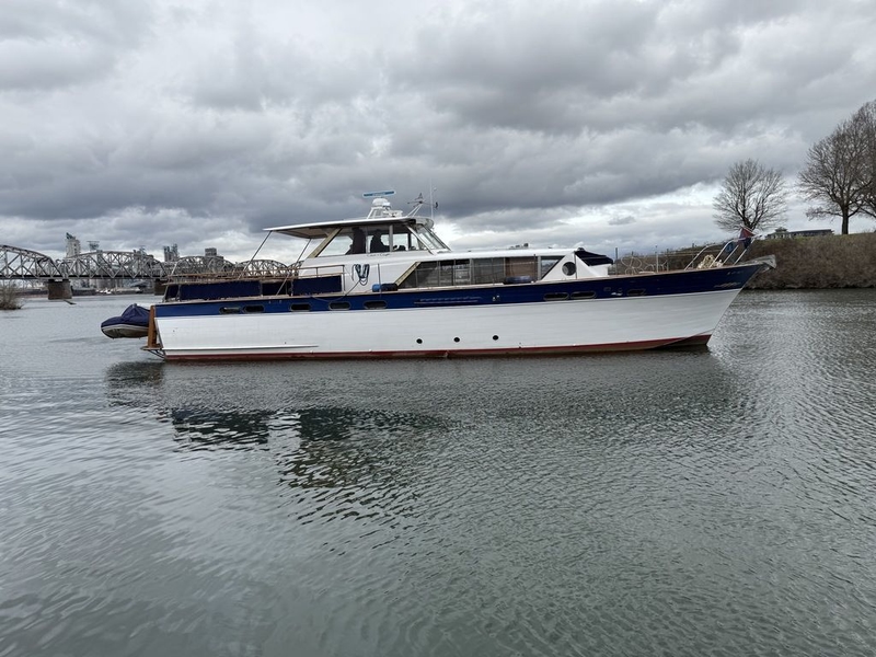 Three staterooms, three heads, full complement galley, newer generator, new teak decks, all hardware re-chromed. Electronics include Furuno radar, autopilot, various meters, windlass, dinghy davit, trim tabs. Nick Jackson davits. 11' rib tender with console and 25-Yamaha. Nice wood floors, custom spun aluminum dash, 2237-original hours on the twin 8v-71 320hp Detroit diesels. Very spacious with three staterooms, 3-heads with new Techma electric toilets. Fuel tanks have been replaced, and exhaust lines. Rib tender plus outboard and Roskelley davits.