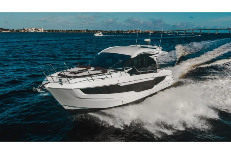 Introducing the stunning Galeon 410 HTC, a perfect blend of elegance and power. Building upon the success of the renowned 400 FLY model, this sleek and sporty coupe is designed to turn heads on the water. With its exceptional hull construction, the 410 HTC promises a smooth and exhilarating ride. Step inside and be amazed by the luxurious interior that rivals that of mega-yachts. The attention to detail is evident throughout, with high-quality finishes and premium materials. Take in the breathtaking views through the electrically actuated roof above the cockpit, allowing for an open-air experience like no other. The bowdeck lounge is a true masterpiece, featuring convertible, flip-up seating that provides the perfect spot to relax and soak up the sun. Enhancing the overall experience, the 410 HTC boasts a sunroof over the helm station and a fully integrated galley for all your culinary needs. One of the standout features is Galeon's signature Beach Mode, transforming the yacht into a spacious entertainment area with just the push of a button. Elevate your boating experience with the Galeon 410 HTC, the ultimate combination of style, performance, and luxury.