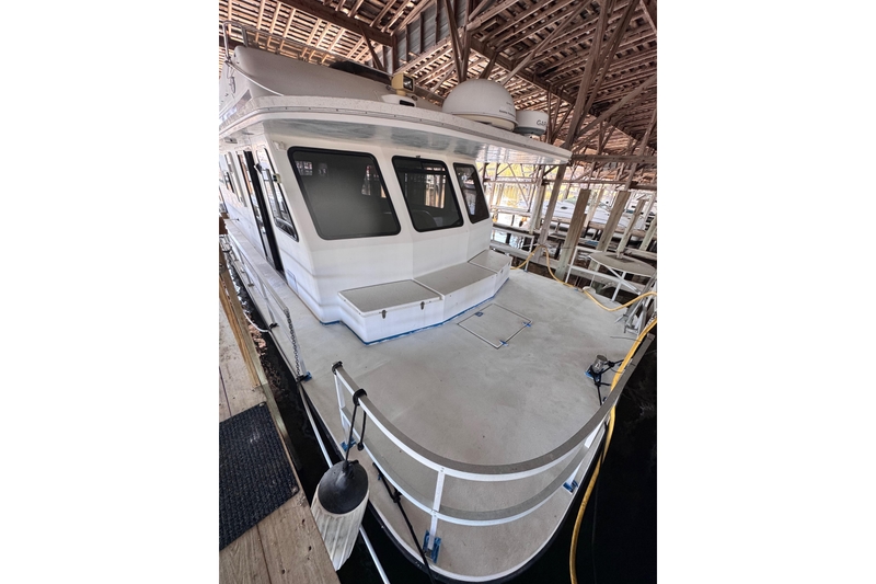 ***Condition Note***: This houseboat is currently a work in progress, offering a unique canvas for renovation. The current owner has initiated several interior projects, but some areas remain unfinished, including sections of the galley ceiling. The décor is somewhat dated, presenting an excellent chance for a new owner to modernize and create a personalized space. Additionally, there are soft spots on the upper deck that need repair, and the starboard fuel tank is not operational. Prospective buyers should be prepared to evaluate these repair needs, whether they are DIY enthusiasts or ready to invest in professional services.