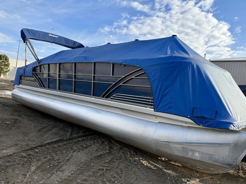Clean 2012 Godfrey Sanpan 2500 Pontoon. Yamaha F115 4-Stroke with low hours. Fiberglass raised Helm. SL layout with double L loungers in rear. Pillowtop interior. Cover. Table. Polk Audio. Dark Blue exterior with dark gold rails. Tan interior color. AFT vinyl flooring. Great Condition.