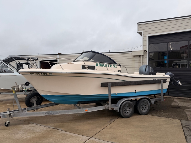 This newly arrived brokerage package is powered by a 2017 Yamaha F150XB Four‑Stroke Outboard paired with a 2017 Yamaha T9.9XPHB High Thrust Outboard kicker motor, giving you dependable primary power along with an ideal trolling setup for salmon and offshore fishing. The boat sits atop a Pacific galvanized tandem axle trailer for reliable transport to your favorite boat ramps.