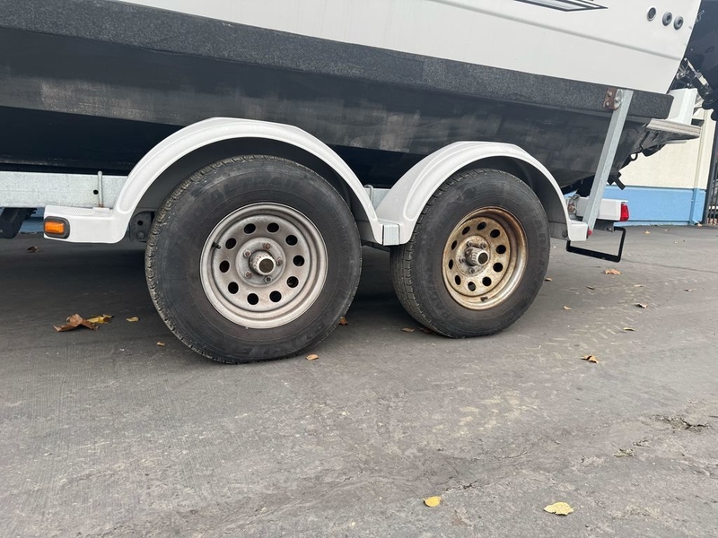 - EZ Loader 4000 lb factory matched galvanized tandem axle bunk trailer with hydraulic disc brakes, swing tongue & custom tie down straps
