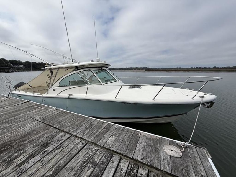 This is a very nice updated 2006 Pursuit 345 Drummond. It is powered by twin 2023 Suzuki 300 HP engines that only have 195 hours on them since new. They have the remaining 5 year factory warranty.