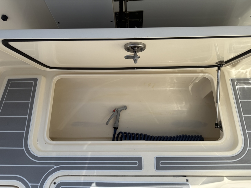 This 2020 Scout 277LXF is a clean, well-maintained trade that was kept in dry storage and is ready to go for lots of fun out on the water. It’s loaded with standard features such as a fully walkable transom swim platform with Esthec, a port-side swing in door, forward seating with removable backrests and storage underneath, and a powder coated T-Top hardtop w/ integrated frameless windshield and rocket launchers to name a few.