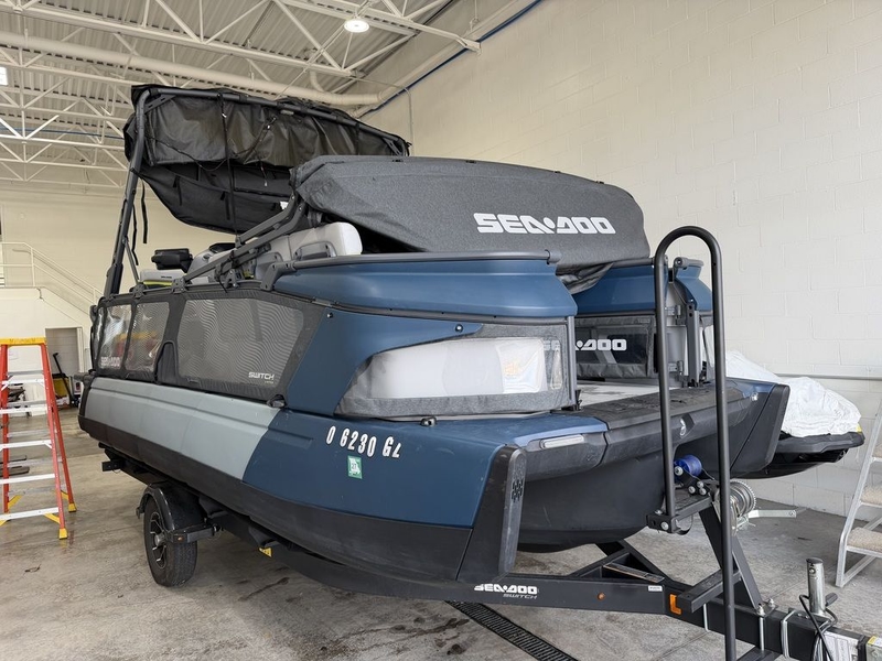 The 2024 Sea-Doo Switch 21 Limited is a premium pontoon that blends comfort, technology, and fun into one sleek, easy-to-drive package. With its modular deck layout, upscale Limited trim, and Sea-Doo’s signature handlebar steering and jet propulsion system, this 21-footer delivers a fresh take on cruising, entertaining, and family days on the water. Premium features like added seating, interior lighting, exclusive styling, BRP Premium Audio, Garmin touchscreen GPS, a 10.25-inch display, and a full swim platform with retractable ladder make the Switch 21 Limited an impressive choice for boaters who want something modern, sporty, and versatile. Trailer included.