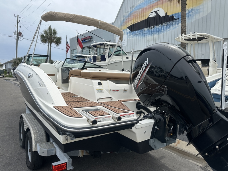 This 2018 Sea Ray 21 SPX OB is a great all-around family boat with the right upgrades and a clean, modern look. Powered by a reliable Mercury 150 FourStroke (100 hrs), it offers strong performance, efficiency, and easy maintenance.