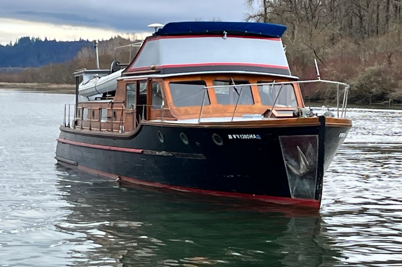 1943 Shain-Monk 50' Bridgedeck Cruiser: A Unique WWII Naval Heritage Gem | Twin Ford Lehmans | Boathouse Kept | Sold As-Is (Dinghy Not Included) A REMARKABLE PIECE OF NORTHWEST MARITIME HISTORY This 1943 Shain-Monk Bridgedeck Cruiser is more than just a classic wooden yacht; it is a preserved artifact from a limited wartime production run commissioned by the United States Navy during World War II. Designed by the esteemed Edwin Monk Sr., a legendary Northwest naval architect, in collaboration with Morris Shain, these vessels were built at various Puget Sound yards as part of an urgent coastal defense initiative. Historical records indicate that only about 52 of this class were constructed in 1943, serving on the West Coast from Alaska to Los Angeles for patrol and harbor duties in challenging coastal conditions. The design harmoniously combines naval durability with Monk's signature Northwest elegance, producing a boat that is both robust and timeless. This vessel, hull #250770, proudly carries that legacy. TIMELESS MONK DESIGN & ORIGINAL NAVAL CONSTRUCTION These wartime Shain-Monk bridgedeck cruisers were crafted from the finest materials available: Alaskan Yellow Cedar carvel planking, steam-bent oak frames, and robust framing typical of Monk's naval and yacht designs. Featuring skeg-protected twin shafts (a Navy requirement for beaching), full-keel stability, and excellent tracking, the long 'bridgedeck' cabin is characterized by its iconic swept lines. The resulting hull shape has been admired for eight decades for its capability, warmth, and spirit. CURRENT OWNERSHIP & CONDITION The vessel has been kept in a boathouse throughout the current owner's tenure, shielding the wooden structure from UV damage, rain, and seasonal weather. Offered as-is, it allows the next owner to choose the extent of restoration or modernization they wish to undertake. Original character remains abundant: The classic pilothouse with a traditional helm, varnished mahogany interior, vintage hardware and fittings, and a functional liveaboard layout including a salon, galley, head, and stateroom. (Dinghy shown in photos is not included.) MECHANICAL - VERIFIED FEATURES (SAFE & ACCURATE) This vessel is powered by: Twin Ford Lehman Diesel Engines, known for their reliability and long life, providing economical displacement cruising. Engine access is via interior hatches, with additional mechanical features including twin inboard direct-drive shafts, skeg-protected props, a 12V DC system + 120V AC shore power, Garmin navigation electronics, and VHF radio at the helm, along with traditional chain-and-cable steering and stainless exhaust risers. (All mechanical systems are subject to buyer inspection.) ACCOMMODATIONS & LAYOUT Pilothouse: Classic wood helm with bronze and analog gauges, Garmin chartplotter, depth system, VHF, and navigation controls, offering panoramic forward visibility. Salon: Warm mahogany interior with large windows, dinette seating, vintage oil lamps, and brass accents, along with a diesel/solid-fuel cabin heater. Galley: Stainless countertops, stainless sink, original cabinetry, ample storage, and a classic marine stove. Forward Stateroom: Generous berth with anchor-themed cabinetry, reading lamps, portholes, and original paneling. Head/Shower Area: Sink and vanity, shower pan, storage lockers, vintage fixtures, and lighting. Aft Exterior Deck: Open cockpit for gear, chairs, or fishing, access to the swim platform and lines, with an upper deck storage area and roof access. A winter cover structure is in place (dinghy not included). WHY THIS BOAT IS SPECIAL Very few WWII Shain-Monk bridgedeck cruisers remain afloat, and even fewer possess this level of originality and structural integrity. With its rich naval heritage, Monk design pedigree, twin-diesel power, inviting interior, and boathouse-kept condition, this vessel is perfect for: A passionate wooden boat enthusiast, a liveaboard seeking charm and history, a restoration-minded craftsman, a collector of Northwest maritime heritage, or anyone desiring a boat with unparalleled character. ADDITIONAL DETAILS: Dinghy not included, sold as-is, where-is in its current condition, boathouse-kept under current ownership, twin Ford Lehmans installed, and the vessel retains her classic Shain-Monk naval architecture.