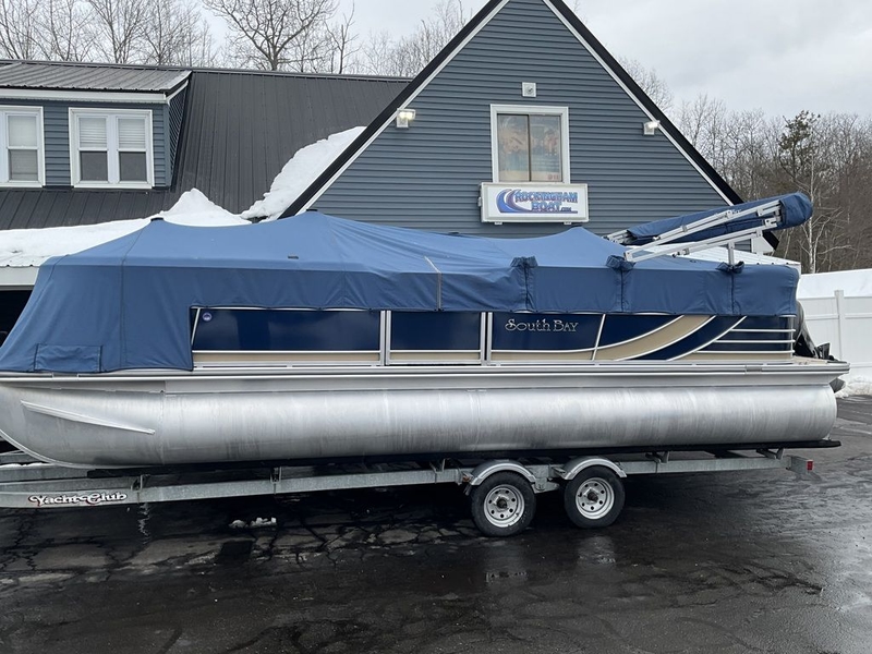 The 2013 South Bay 522 CR is a 22-foot-class pontoon boat (approx. 24' 2' overall length) with a 25-inch diameter pontoon system, featuring an 8'6' beam and a 12-person capacity. It typically features an L-shaped stern couch, twin bow lounges, a 31–32-gallon fuel tank, and a maximum horsepower rating up to 150-300 HP.