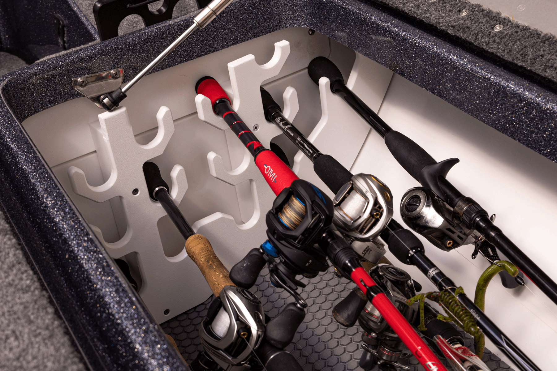 The 21 XE is a cumulation of design and art. We have combined the ever-popular PHX hull with the Elite style bow, to create the finest fishing platform available. This model now brings all new features such as full fiberglass rod boxes and backlit analog push button switches to raise the bar for our anglers. The 21 XE also comes standard with an array of features to help you stay at the top of your fishing game such as a Phoenix E2 Electronics Wiring System and a fully padded front deck and front deck lids. All of these combine to help make you the most competitive angler on the water.