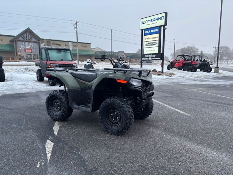 THE OFFICIAL RIDE OF FEEDING TIME.The CFORCE 400 keeps things honest. No overkill. No overspend. Just a dependable mid-size ATV built to handle hard days and tight trails with ease. With 30 horsepower, 4WD, and class-leading low vibration, it’s engineered for comfort and control over long hours. A rugged steel chassis, 12' wheels, and nearly 10 inches of ground clearance give it real off-road ability. Add in a 3.5' digital display, 2' receiver hitch, and accessory-ready charging ports, and you’ve got everything you need—nothing you don't.