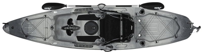 Powered by the patented MirageDrive GT pedal propulsion system with Kick-Up Fin technology, the Passport 12 R is versatile enough to take you wherever the fish are biting on your next kayak fishing adventure. With an all-new rotomolded hull construction, the Passport 12 R has a sleek aesthetic, delivering ultimate stability while still maintaining performance and speed on the water. It comes loaded with fish features that guarantee an unforgettable kayak fishing experience. Easily install a fish finder and mount a shallow water anchor of your choosing with a transducer cavity and scupper and Power-Pole® Micro bracket indent. Designed for long days on the water, the breathable mesh seat provides maximum comfort. Additional features include loads of bow and stern storage with Bungee, 8' Twist-n-Seal hatch, two fishing rod holders, two accessory tracks to customize your yak and under seat and gunnel tackle storage. Upgrade with a sail kit or bimini sunshade with the vertical accessory tube. Comes standard with a two-piece aluminum paddle.