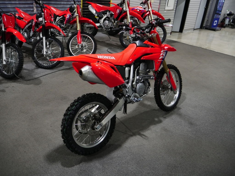 The CRF150R Expert features bigger wheels and a longer swingarm, giving it a higher seat to better suit taller riders.