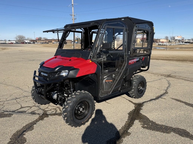 EXPLORE FURTHER. BRING THE CREW.Adventure just got an upgrade. For 2026, the new Pioneer 700-4 blends proven Honda performance with enhanced comfort and convenience. As always, it features our convenient QuickFlip® seating, but now adds more storage, a cooler interior, and rugged new Kenda tires. Choose from standard, Deluxe, or Forest trims, and redefine what versatility and capability can do for you and your crew.