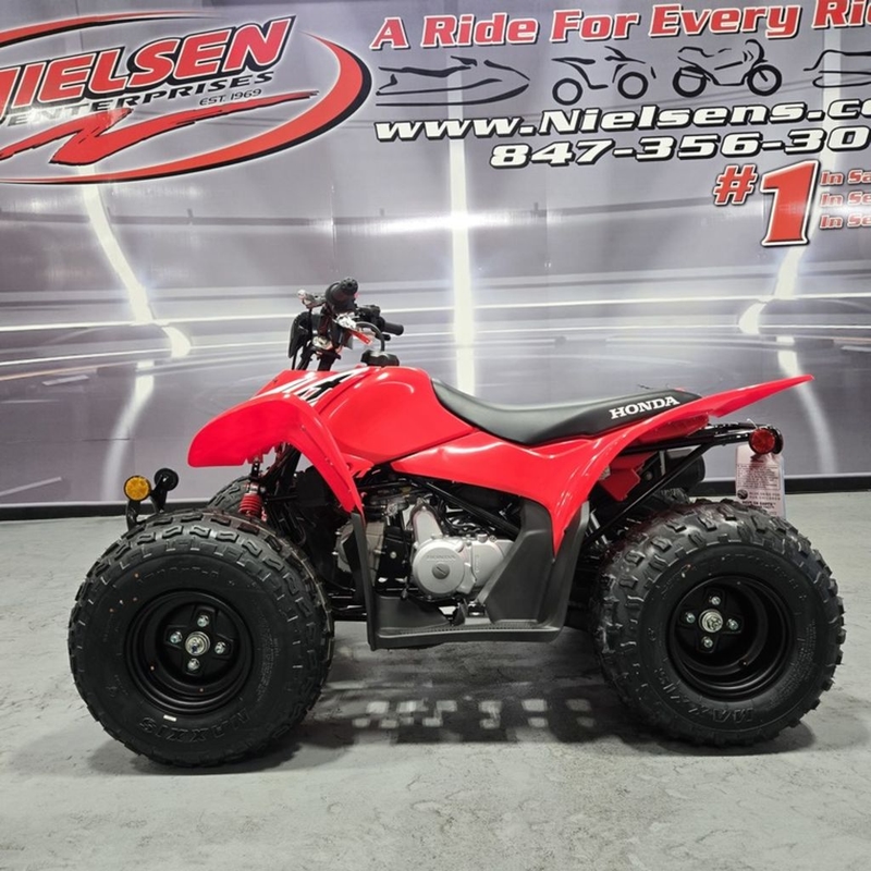 This mighty little ATV is available in classic Honda Red with race-style graphics.
