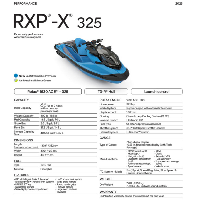 Sea-Doo PWC RXP X 325 AUD BE IBR 26 2026