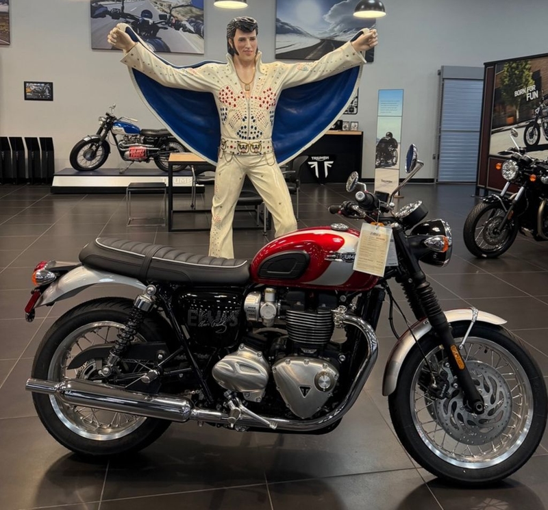 NEW BONNEVILLE T120 ELVIS PRESLEY LIMITED EDITIONThe Triumph Bonneville T120 Elvis Presley Limited Edition pays tribute to a cultural icon and the biggest solo music artist in history and celebrates the ‘Memphis Mafia Triumphs’ purchased by Elvis in 1965 for his closest friends.
