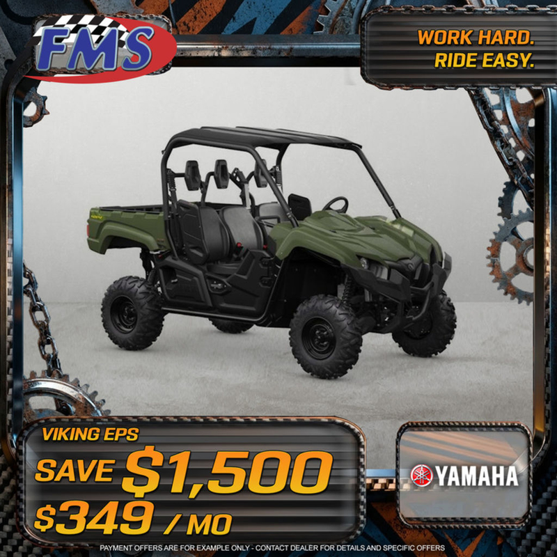 Yamaha's proven, industry-leading Electric Power Steering (EPS) system on the Viking EPS offers excellent handling over various types of terrain, with lower steering effort for reduced fatigue after a long day in the field or on the trail.