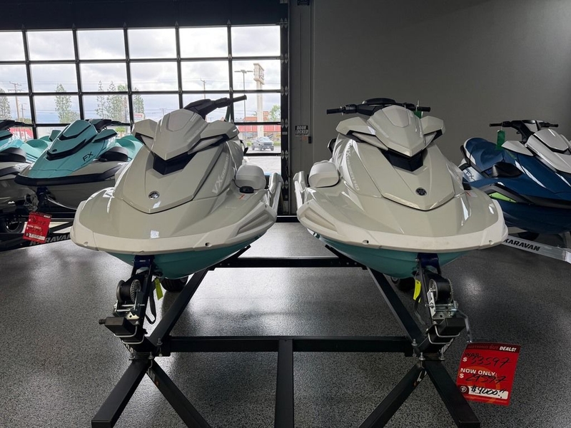 Enjoy the perfect blend of performance, comfort, and style with this versatile package featuring two 2025 Yamaha VX Cruiser HO WaveRunners with factory audio in a sleek Mint/Pearl color scheme, paired with a 2026 Karavan double trailer—ready for the water whenever you are.