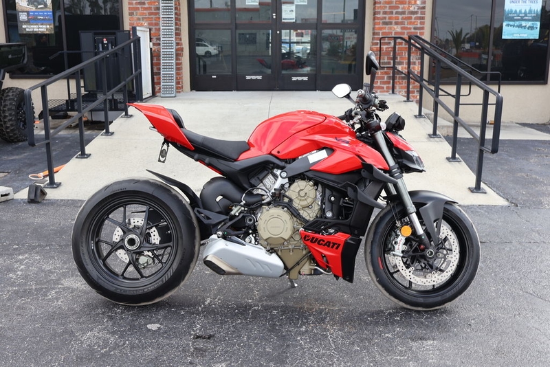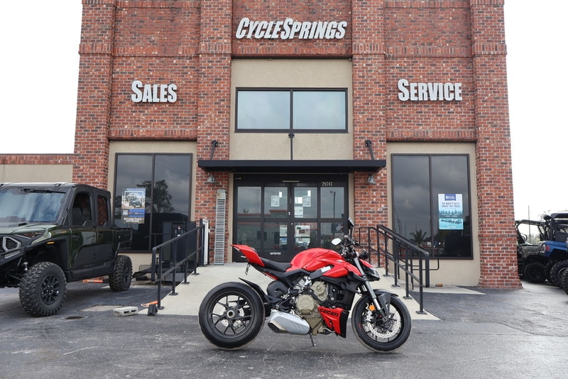 Now available at Cycle Springs Powersports in Clearwater, FL: the 2024 Ducati Streetfighter V4—a no-compromise naked superbike powered by the 1,103cc Desmosedici Stradale V4, featuring aerodynamic winglets, advanced electronics, and race-derived chassis performance.