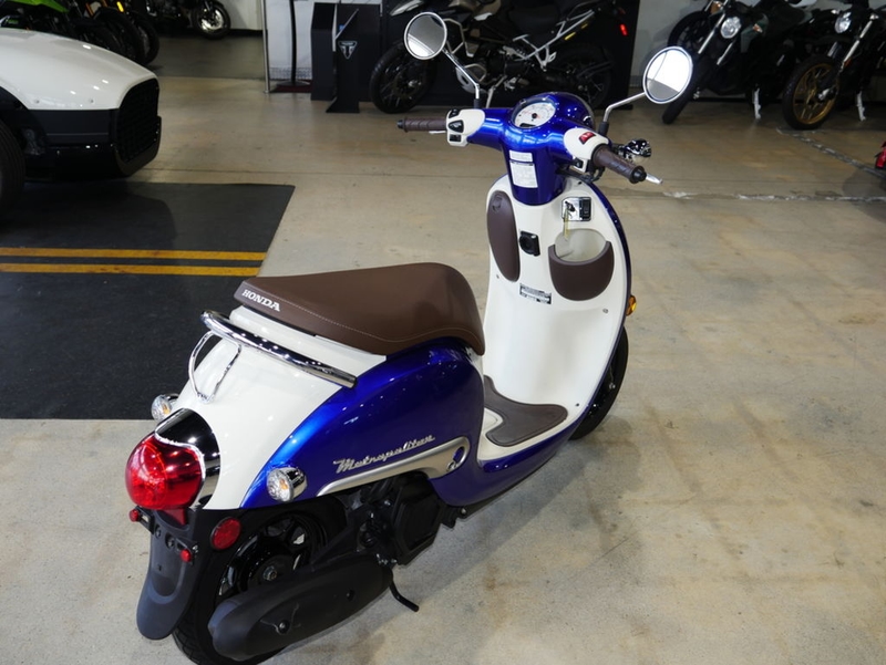 GOOD TIMES GUARANTEEDMiles per gallon, style per mile, or smiles per mile—any way you look at it, the 2023 Honda Metropolitan is just a two-wheeled bundle of good news. And it should be: this legendary scooter has been making getting around fun for thousands of riders. Features like its step-through design, no-shift automatic transmission and electric starter make it easy to operate. Lockable under-seat storage puts a big check in the practicality box. And the classic scooter styling, epic fuel efficiency and world-famous Honda engineering and quality all just add to the enjoyment. New colors this year (Matte Armored Green Metallic and Atmosphere Blue) keep this timeless funbot fresh.