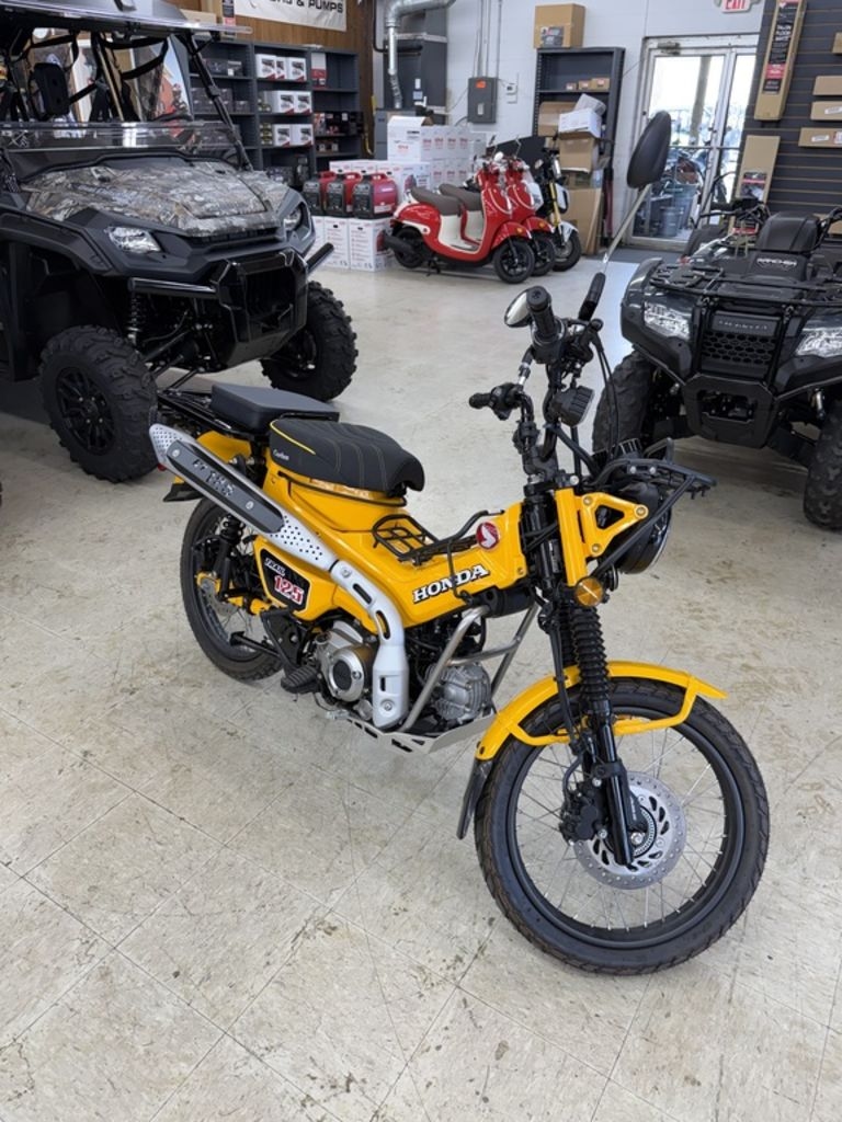 EVERYDAY AWESOMEWith its blend of timeless design and modern features, the Honda Trail125 continues to captivate riders worldwide. Equipped with a robust engine, fuel injection, front-wheel ABS, and a stylish new Turmeric Yellow for 2024, it maintains its classic appeal while still utilizing today’s engineering. Also featuring a no-clutch semi-automatic transmission and low step-over frame, this 125cc mini motorcycle blends real-world performance with everyday convenience, making it perfect for just about any adventure.