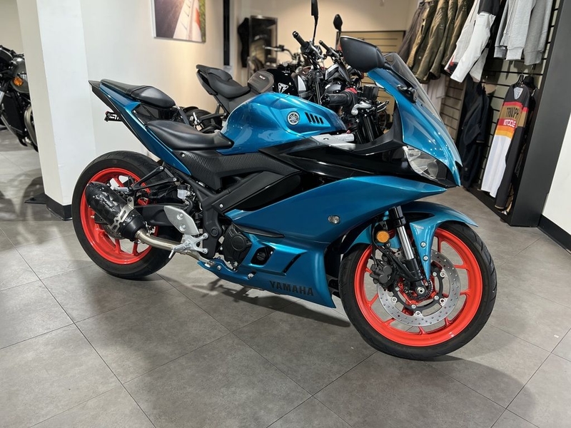 The R3’s inverted fork works with a Monocross® rear shock to provide exceptional handling, with balanced chassis rigidity, a near 50/50 weight balance, and damping and spring settings designed for a wide range of road conditions.