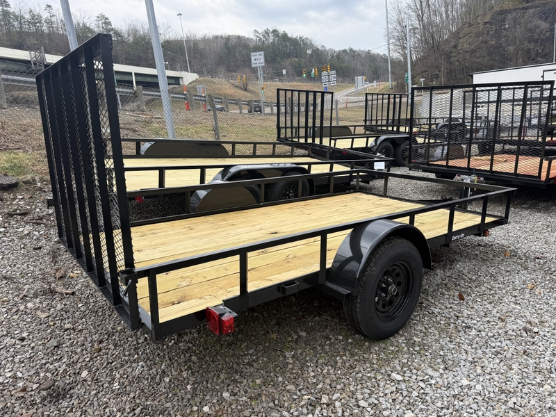 The Carry-On 6X12GW is a 6-foot by 12-foot single-axle utility trailer with a 2,990 lb. GVWR, designed for hauling ATVs, landscaping equipment, or cargo. It features a 2x8 treated wood floor, a 2,090 lb. payload capacity, and a versatile rear ramp gate that can fold into the bed
