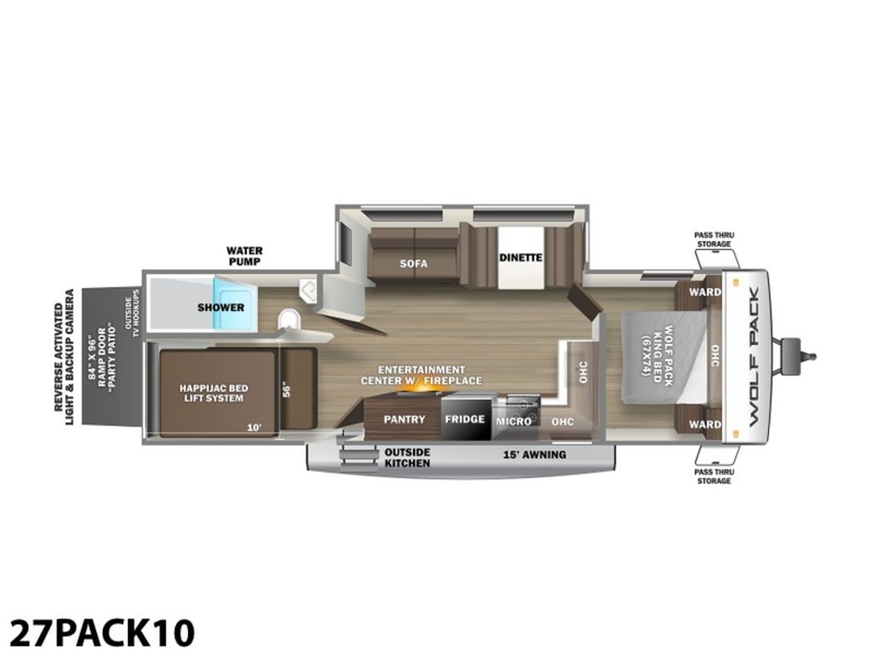 Your search is over! You have found the most affordable and versatile, full-featured toy hauler bunkhouse on the market! Why do we say bunkhouse? Because the Cherokee Wolf Pack is a toy hauler that converts to a bunkhouse in a matter of minutes. In fact, approximately half of Wolf Pack customers are bunkhouse buyers looking for more sleeping room and versatility in their unit. The Wolf Pack is not always a toy hauler or a bunkhouse. It is whatever you need it to be for the trip you are about to take. If your family likes to take a golf cart, motorcycles, ATV’s, bicycles, kayak’s, coolers, grills, firewood and all the other camping staples, but doesn’t like to take the second vehicle to get it there, look no further than the Wolf Pack! Versatility is the name of the game!